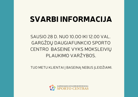 Gargždų sporto centro baseine vyks moksleivių varžybos