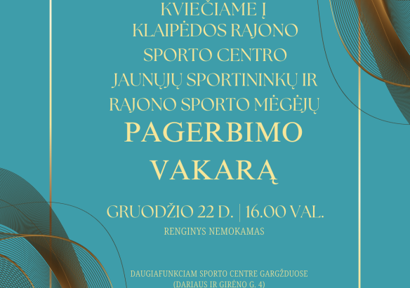 Kviečiame Klaipėdos rajono gyventojus ir visą sporto bendruomenę dalyvauti jaunųjų sportininkų ir rajono sporto mėgėjų pagerbimo vakare. Renginio metu bus... -